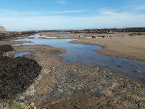 Expansive beach at Robin Hood’s BayPlenty of rock poolsInteresting beach
