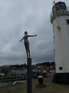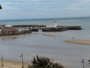 We were nearing the end of our sojourn but could not miss Scarborough. This is the oldest resort in the country which first attracted early 17th century visitors to it’s newly discovered mineral springs. The Victorians enjoyed it as a “Watering Place” but, it was transformed after WW2 when it became a holiday haven for workers from the industrial heartlands. It still retains it’s holiday resort persona with a mixture of beautiful sandy beaches, amusements and old town streets. The more modern shopping centre stretching down from the railway station is less attractive.