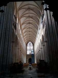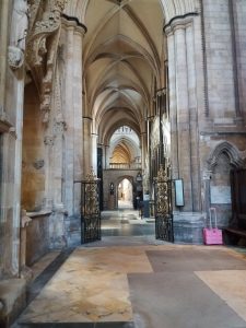 After enjoying the market place and some of the cobbled streets, we made our way to the Cathedral. As ever, it is undergoing some restoration work. We parted with £3 each to enter, so added a little to the coffers. I had just taken a picture of the impressive interior when I discovered that photographs are forbidden, oops!