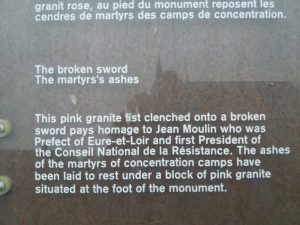 Pink granite fist in tribute to Jean Moulin, first President of the Conseil National de la Resistance