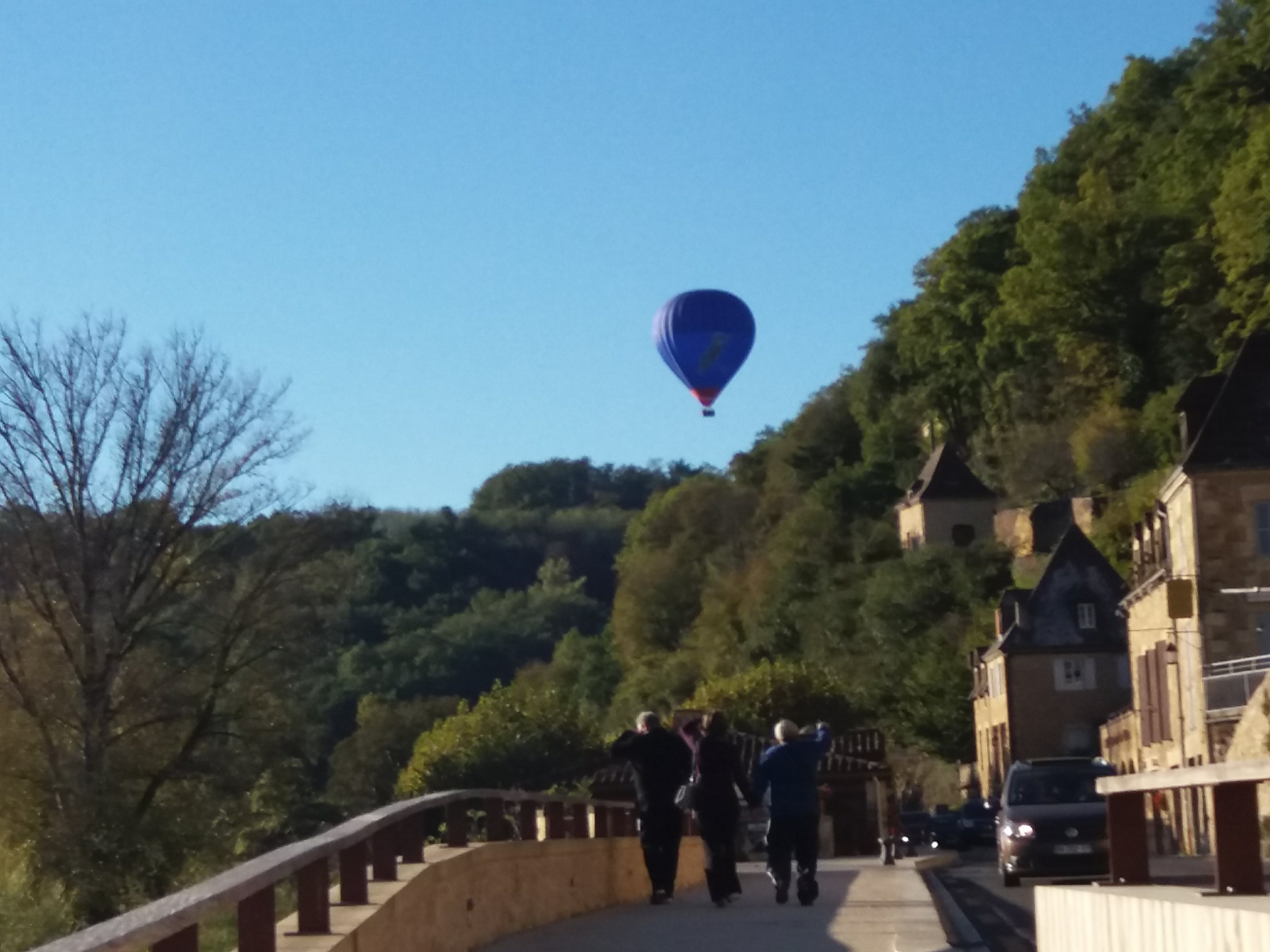 We parked on the aire and walked down to the town just in time to see two hot air balloons rising into the sky.