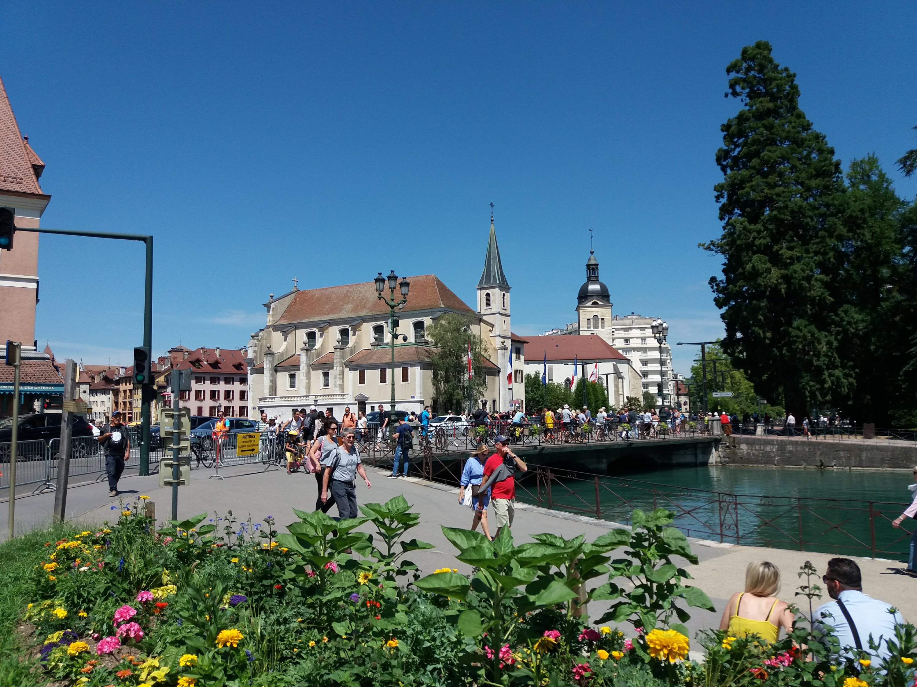 Lakeside viewView from the Pont des AmoursBusy promenadeAmazing sculpture on the lakesideShopping streetInside the St Pierre cathedralOne of many vaulted shopping streetsLooking towards the old townThe historic Hotel de Ville. The 1771 ironwork of the staircase displays the trout of the coat of arms of AnnecyPalais de L’isleCanal running along and around the Palais
